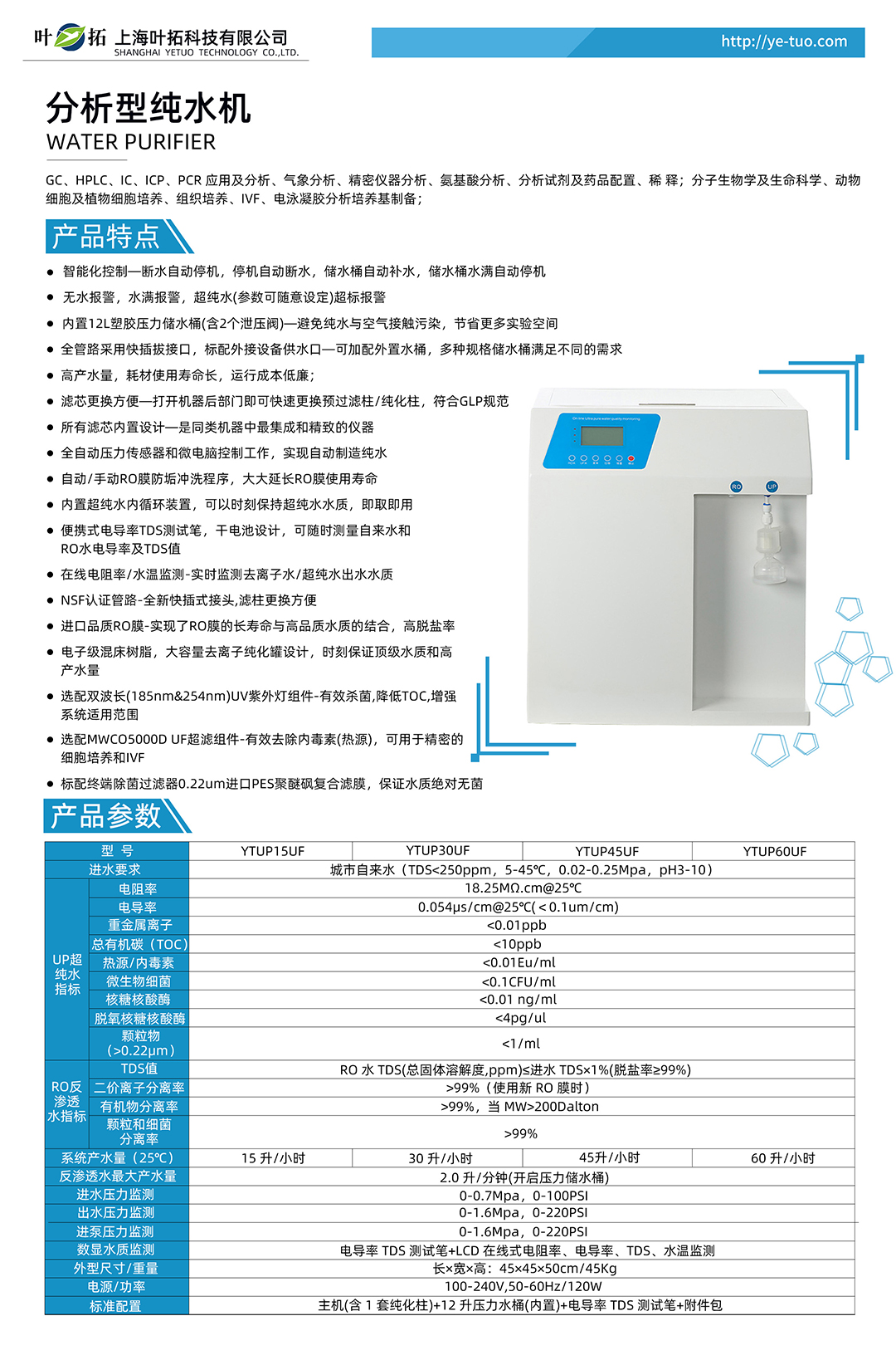上海葉拓 YTUP15SUF 分析型純水機