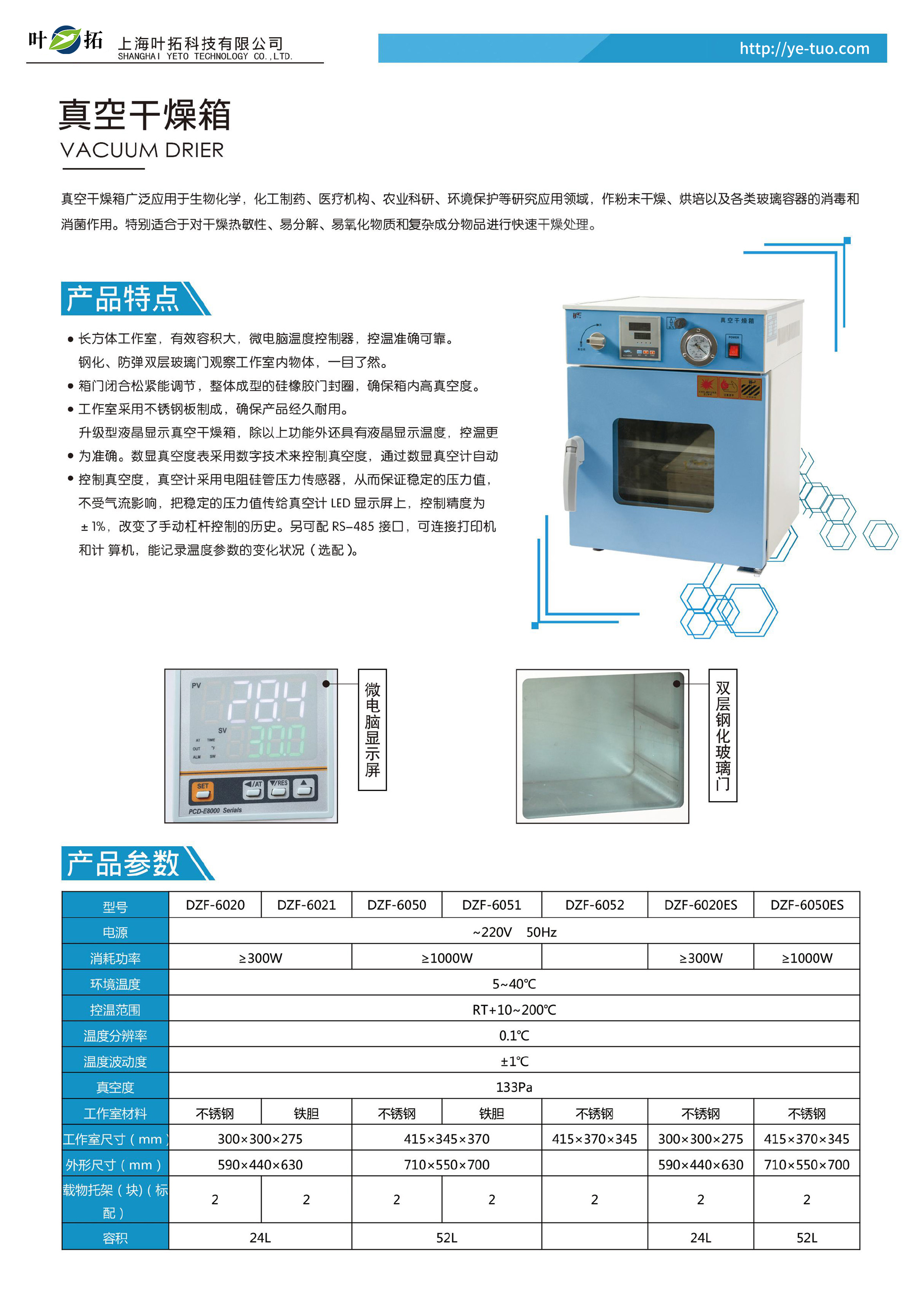 葉拓DZF系列臺式真空干燥箱產(chǎn)品特點