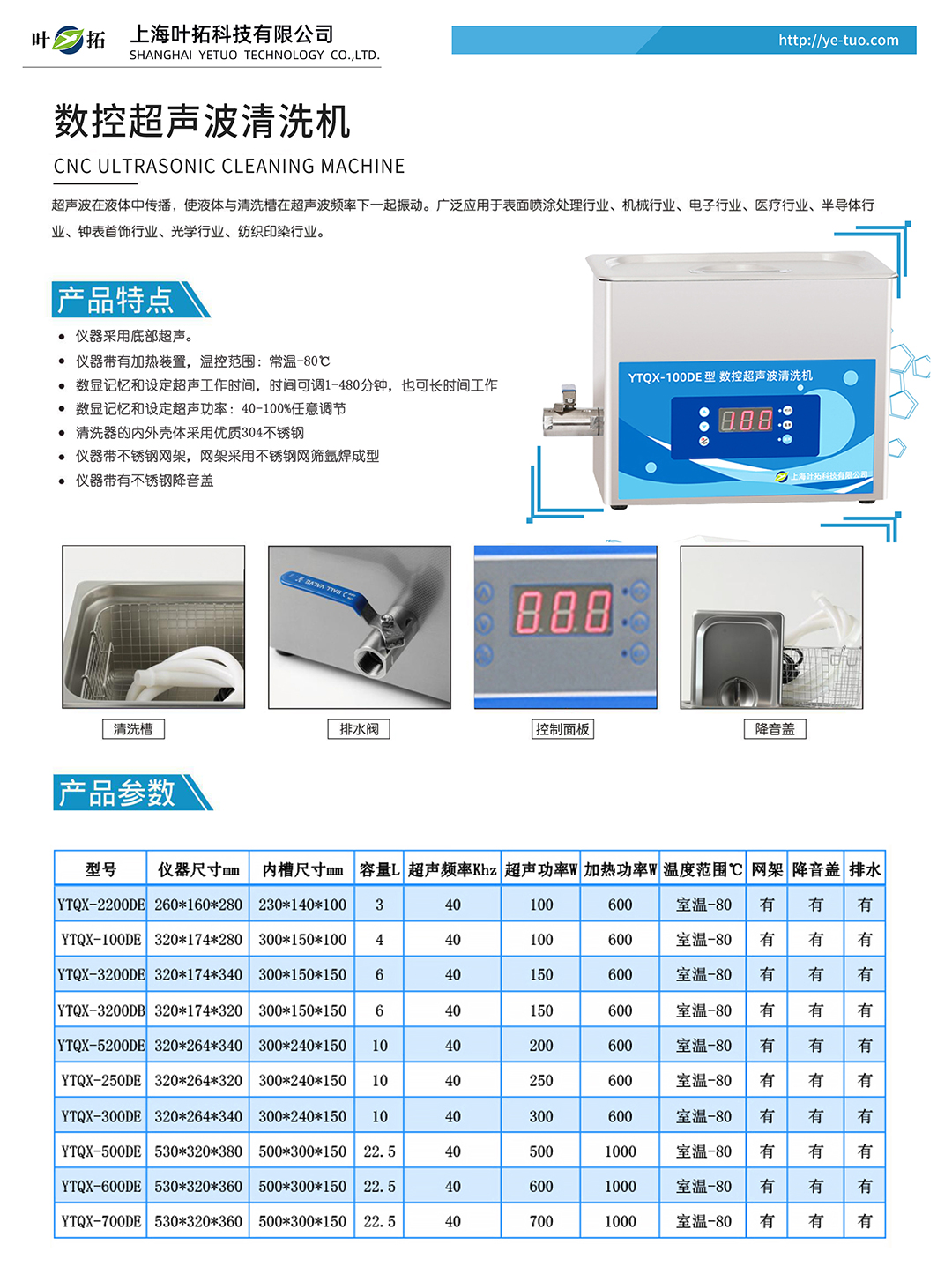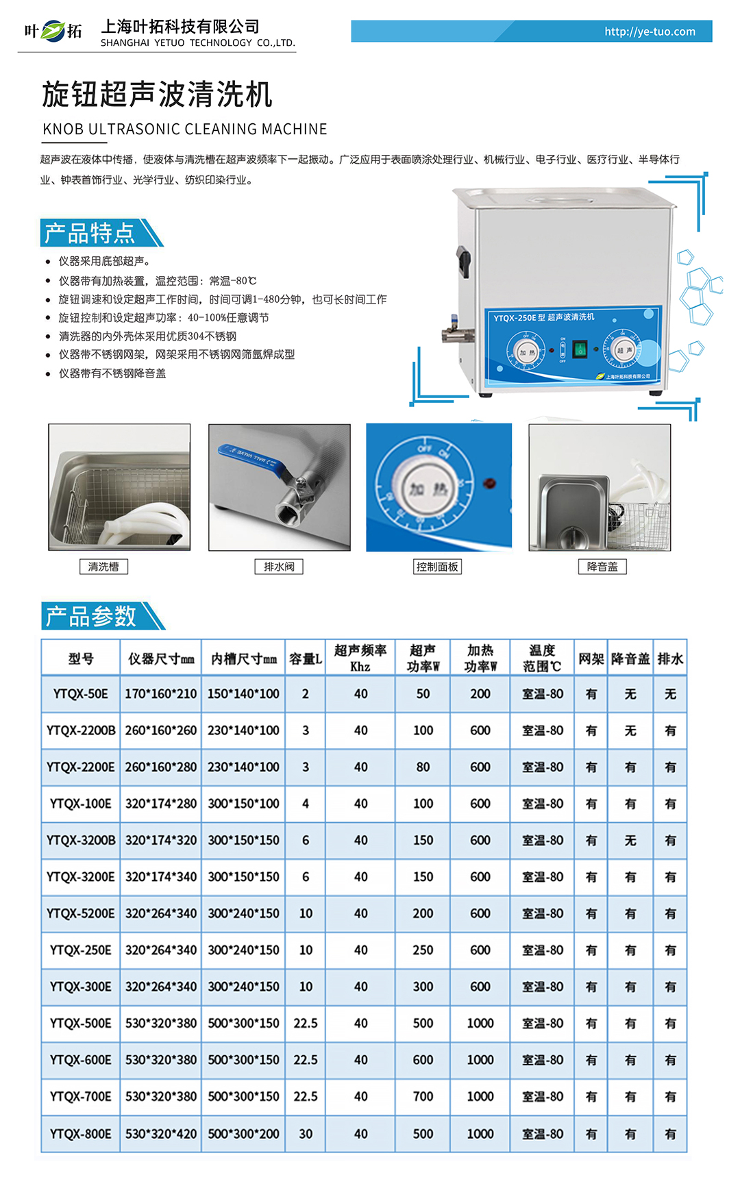 葉拓YTQX系列臺式超聲波清洗機產品特點:
