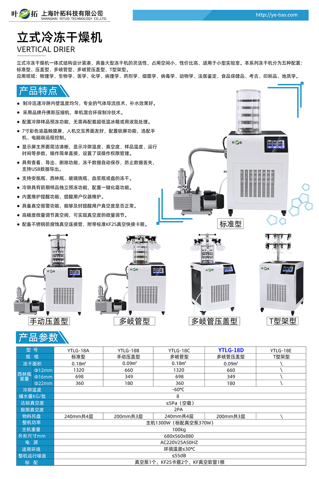 上海葉拓 YTLG-18D 凍干機 立式真空冷凍干燥機 壓蓋多歧管型